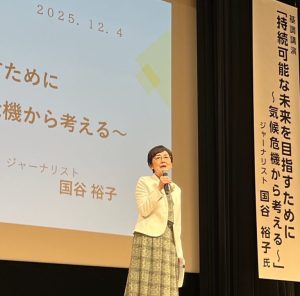 科学的知見から地球の危機に耳を傾け、自分ごととして考え、持続可能な未来を目指すために問い直し実践してほしい、と力強い言葉で講演を締めくくられました。